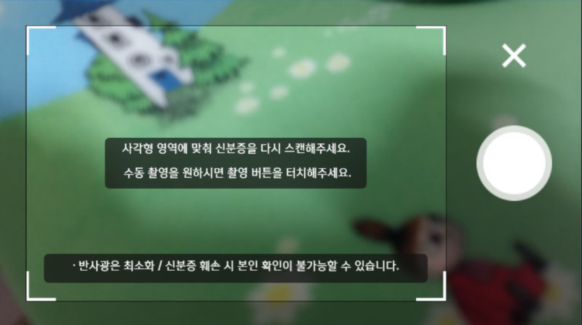 8. 본인 주민등록증 또는 운전면허증 촬영